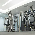חדר כושר ובריכת שחייה זמינים במלון מלא בסטייל זה.